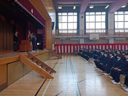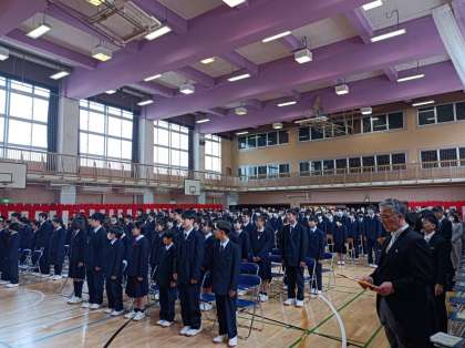 新入生の案内をする3年生、大きな声で返事をしている新入生、堂々とした代表生徒の挨拶など、