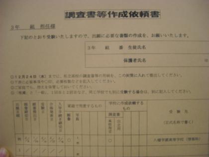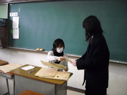 教室で願書・自己PRカード・調査書をもらい、それぞれの都立高校に出願に行きます。
