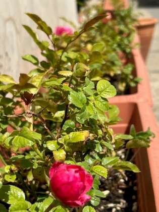 昨年度のメンバーが植えたミニバラが、今年はじめて花を咲かせました。昨年度の皆さんご苦労様でした。