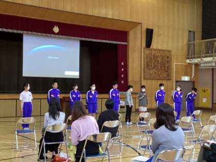 修学旅行説明会では、はじめに、概要の説明を、修学旅行実行委員会の生徒たちが行いました。