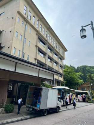 送る荷物をトラックに乗せて、バスに乗り込みます。