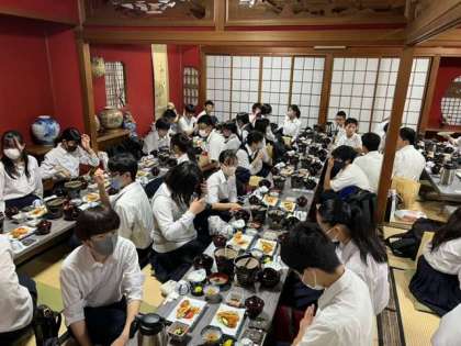 まいどさんとの見学を終え、兼六園脇の食事処で修学旅行最後の食事をいただきました。おまけのお菓子まで完食した生徒がやはり多数。元気で何よりです。