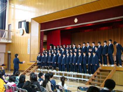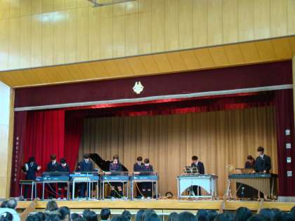 3月10日(土)、本校体育館にて、九品仏小、八幡小、そして八幡中学校のさぎそう学舎による三校合同音楽会が開催されました。本校は、C組の演奏、吹奏楽部、1年生有志による合唱を発表しました。あいにくの雨でしたが、たくさんの方に来ていただきました。