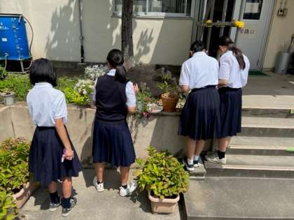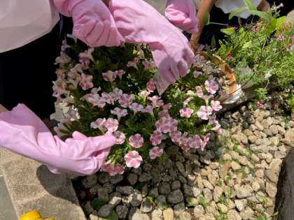 サフィニアなど、咲き終わった花を取り除いて、通気を良くしたり、次の花が咲くようにする作業で、普段は用務主事さんがやってくださっています。