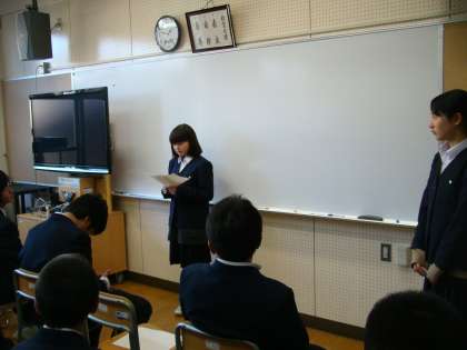 球技大会は天気にも恵まれ、ティーボール,ポートボール,ドッヂボールを3クラスで楽しく行うことができました。また、学年集会では3クラスの反省と、後期学級委員へ前期学級委員からねぎらいのメッセージの発表がありました。