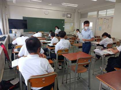 さて、八幡中学校で夏季休業中に補充学習教室を実施しています。