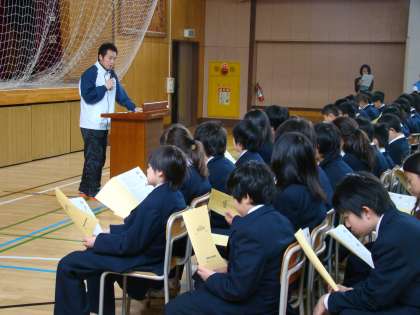 3学年合同で、生活のきまりを確認しました。1年生は、小学校とは違う中学校の生活に早く慣れてほしいと思います。2・3年生は、この機会にもう一度生活のきまりを確認して、先輩として1年生の見本となりましょう。
