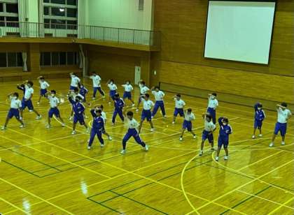 それぞれの学級が趣向を凝らした発表をして盛り上がりました。八中は空手の演舞をお披露目しました。