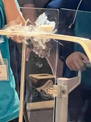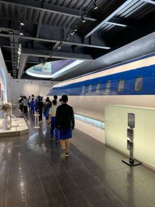 河口湖連合移動教室の2日目。リニア館で実際のリニアが時速504キロで走行する様子や超伝導の実験を見学しています。