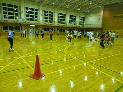 夕食後は広い体育館でレク大会です。