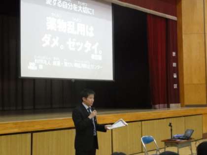 玉川警察署の方の説明を聞き、薬物の恐ろしさにについてのDVDを見ました。
