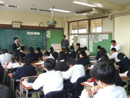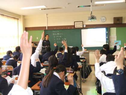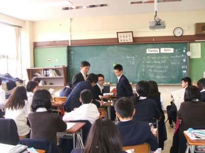 教育の質の向上の取組の中で、(1)各学期の公開週間を授業研究週間と位置づけ、教員同士で互いの授業を参観し合い授業力の向上を図ることや(2)教員は年間1回以上の授業研究・年間1回以上の授業観察を実施し、授業改善に役立てること等をを行っていますが、本日、英語と社会の授業研究が行われました。