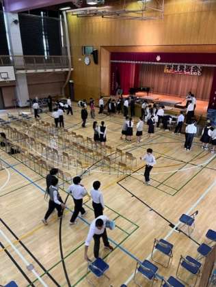 明日は学芸発表会当日。会場の準備に気合が入っています。