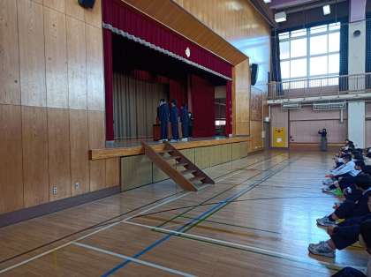 その後、競書会とC組マラソン大会の表彰を行いました。