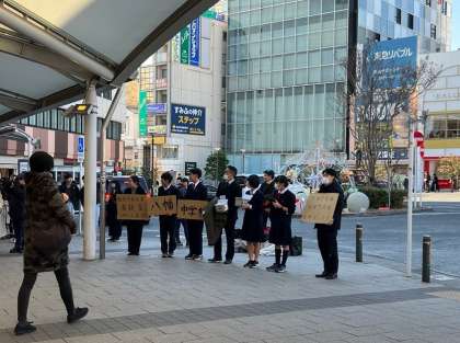 13日土曜のお昼と15日の放課後に、本校生徒を代表して、生徒会の役員が自由が丘駅前で募金活動をしました。自由が丘駅をご利用の皆様、地元の皆様、本校の卒業生や在校生とその保護者の皆様など、本当にたくさんの皆様からご芳志をいただくことができました。