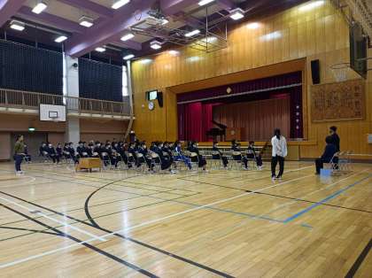 合唱の練習や式典の進行練習、今後は1年生と2年生の合同練習が行われます。