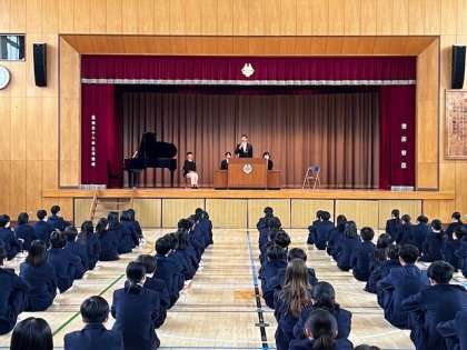 新学期が始まりました。始業式には時間前に全員が集合して、誰も一言も話さず、整列していました。着任式、始業式、2、3年の教員の紹介、そして諸連絡をしました。