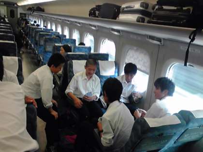 新幹線の中ではカードゲームなどをして楽しく過ごして、ちょっぴり早い昼食タイム。