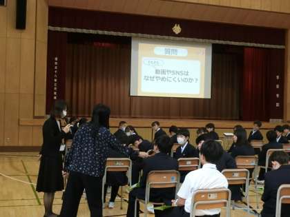 4時間目に1年生は「ネットリテラシー醸成講座」の授業を行いました。