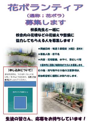 校長先生からは全校校外学習の振り返り、運動会に向けてのお話に加え、校長先生と活動をする「花ボランティア」(通称:花ボラ)の案内・募集がありました。
