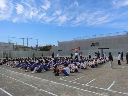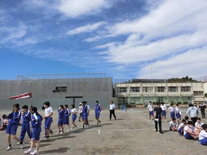 5校時の最後に避難訓練を行いました。今日は火災の想定で、全校生徒で校庭に避難をしました。放送で火災が発生している場所が伝えられ、それを受けて避難経路を選びます。校庭に集合するる形での訓練は初めてでしたが、みんな真剣に取り組んでいました。