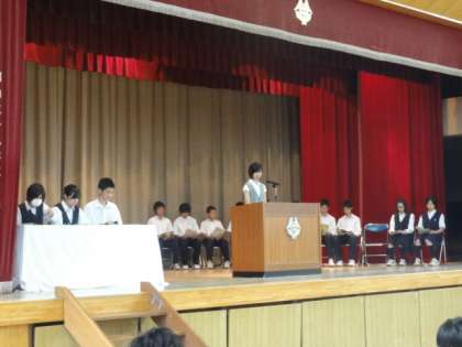 生徒総会は、生徒会本部や各委員会が活動方針や活動内容を発表し、承認を得た上で活動していくための大切な会です。