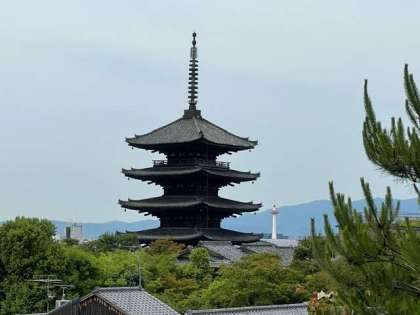 清水寺北側。八坂塔の向こうに京都タワー。
