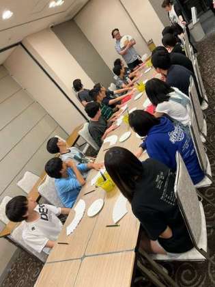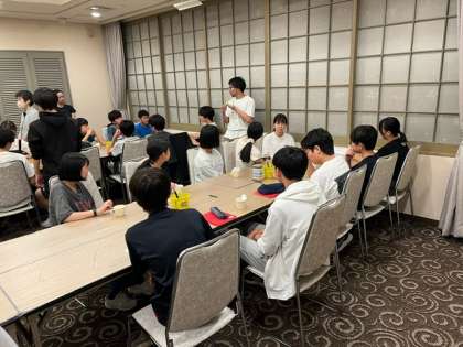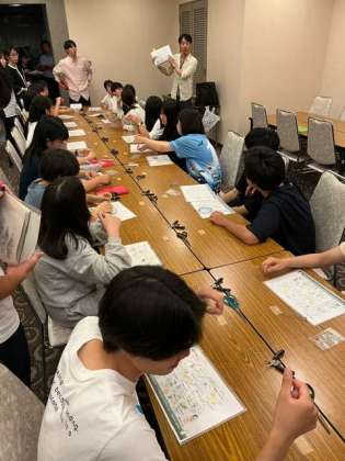 夕食後は、ミサンガ作り、扇子・カップの絵付けの体験です。