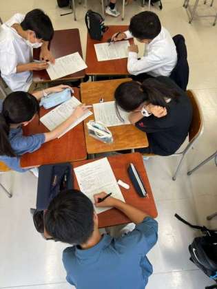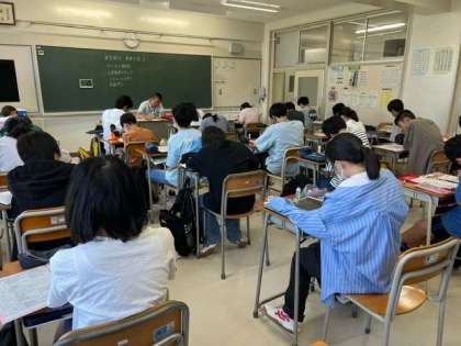 修学旅行の翌日ですが、お休みの生徒はわずか。事後学習の後は、切り替えて、期末試験までの学習計画作り。