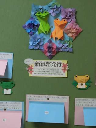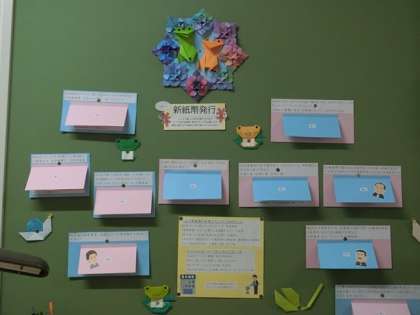 今は7月に発行される新紙幣の知識がクイズ形式で飾られています。