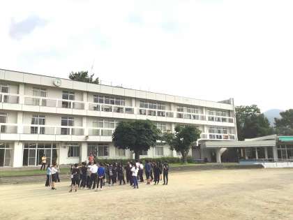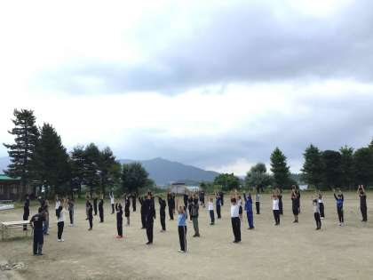 富士山は雲の中ですが、さわやかな風の中、朝礼を行いました。