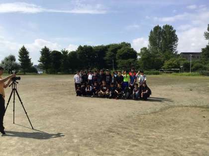 校庭で集合写真を撮りました。みんないい笑顔です。