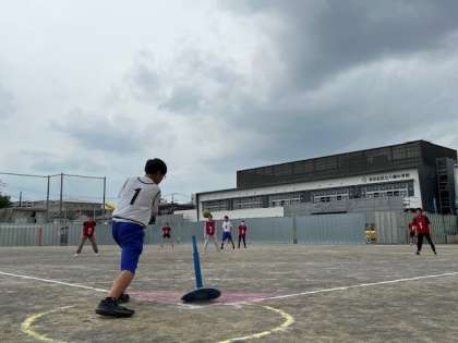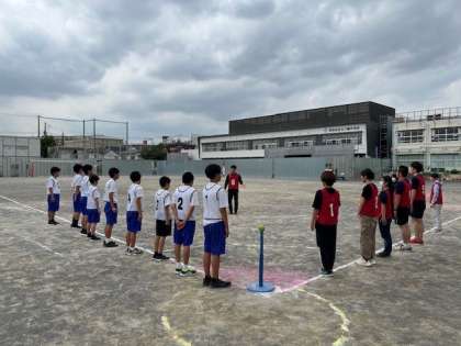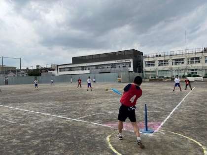 今日のTボールの練習には、AB組の先生たちも参加しました。