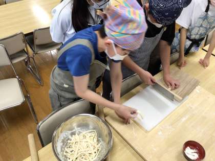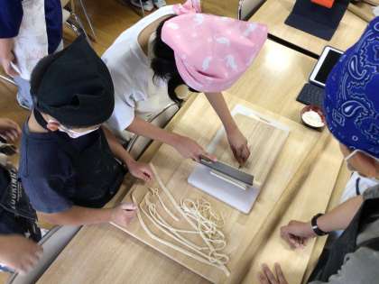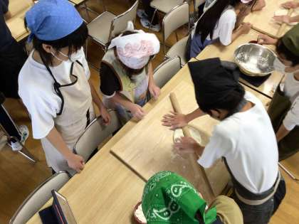 麺棒を使って4ミリ厚まで広げ、切ります。