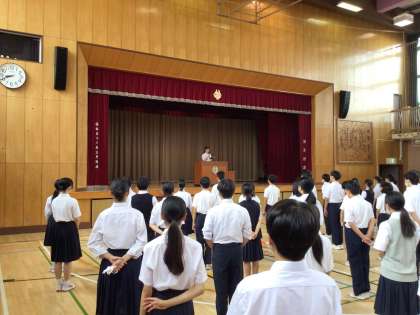 昨日の全校朝礼で生徒会からボランティアの呼びかけがありました。