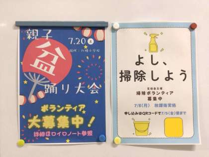 生徒会主催の清掃ボランティア、親子盆踊り大会ボランティア、読み聞かせボランティア…