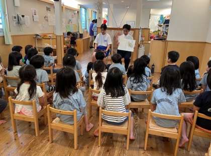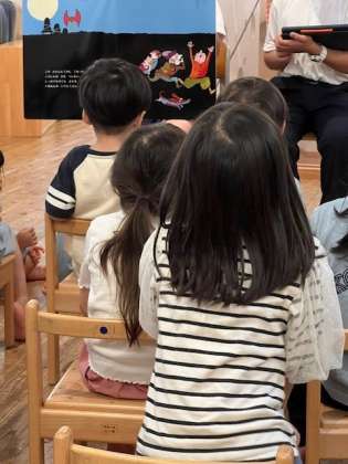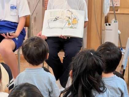 本日、放課後、学校図書館司書のリブネットさんに指導を受けた有志が、本校のお隣の、等々力保育園分園「このは」さんにお邪魔して、読み聞かせをやらせていただきました。