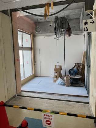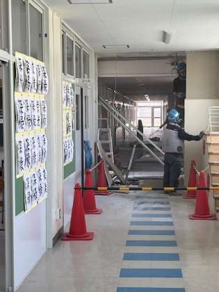 ついに、新校舎とのつなぎ目の壁が外されました。2階の写真からは、新校舎が見えています。