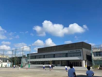 C組の朝マラソンが二学期も始まりました。朝から暑いのですが、打ち水をした校庭を、フェンスの取れた新校舎をバックに、頑張って走っていました。