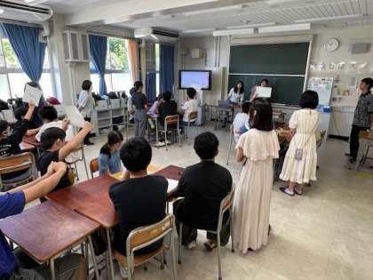 C組は産能大の田中ゼミの学生さんが来てくださって交流授業をしています。