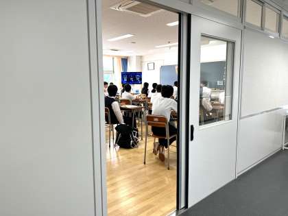 新校舎に移転して初めての朝学活中。生徒会長がプチセレモニーでお話ししてしたように、心機一転、頑張りましょう。