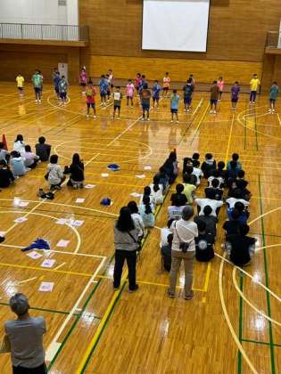 C組の学級紹介は、学年ごとの取組を説明したあと、空手の型を披露しました。司会も、Tシャツも、型もバッチリ決まっていました。