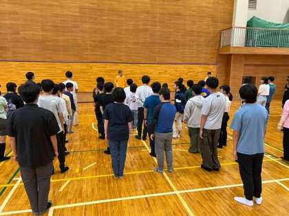 朝食、清掃の後、河口湖学園での閉園式を行いました。団長校長先生、学園長さんからお話しいただき、本校生徒が代表挨拶をしました。