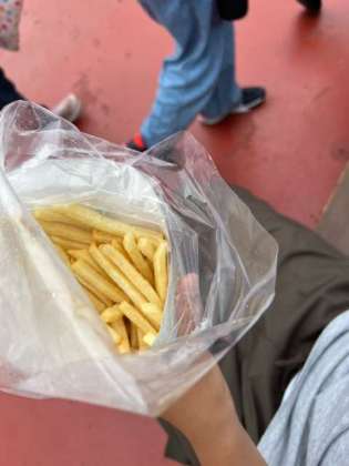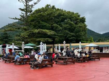 軽食、お土産タイム。さっきお昼を食べたばかりなんですけど。