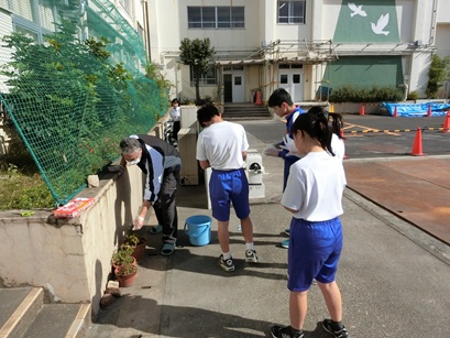 昼休みの花ボランティア活動。