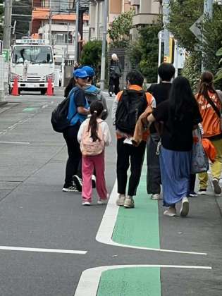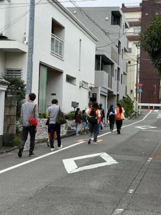 今日は、八中の有志たちがウォークラリーに参加しています。青少年九品仏地区委員会主催のイベントで、小学生が近隣を歩いて見学するサポートをさせていただいています。