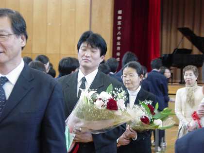離任された5名の方は、本校の教育活動に様々な形で貢献してくださいました。ありがとうございました。生徒からはメッセージと花束、そして最後に全員で校歌を歌いました。