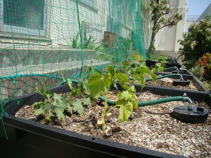 今はまだ小さな苗ですが、1学期の終わりには屋上に届くまでになることでしょう。