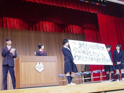 各クラスの学級目標は、クラスごとにさまざまなスタイルで発表されました。墨で書くクラス、コント風に発表するクラス、キーワードを見せるクラスなど、工夫もさまざまでした。クラスごとの雰囲気が伝わる発表でした。