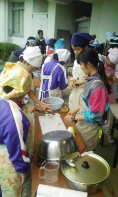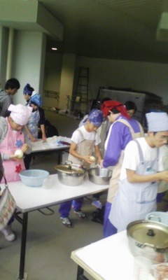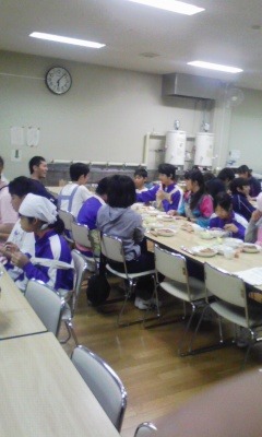 皆で頑張っておいしいカレーができました。この後は体育館開放とビデオ上映です。